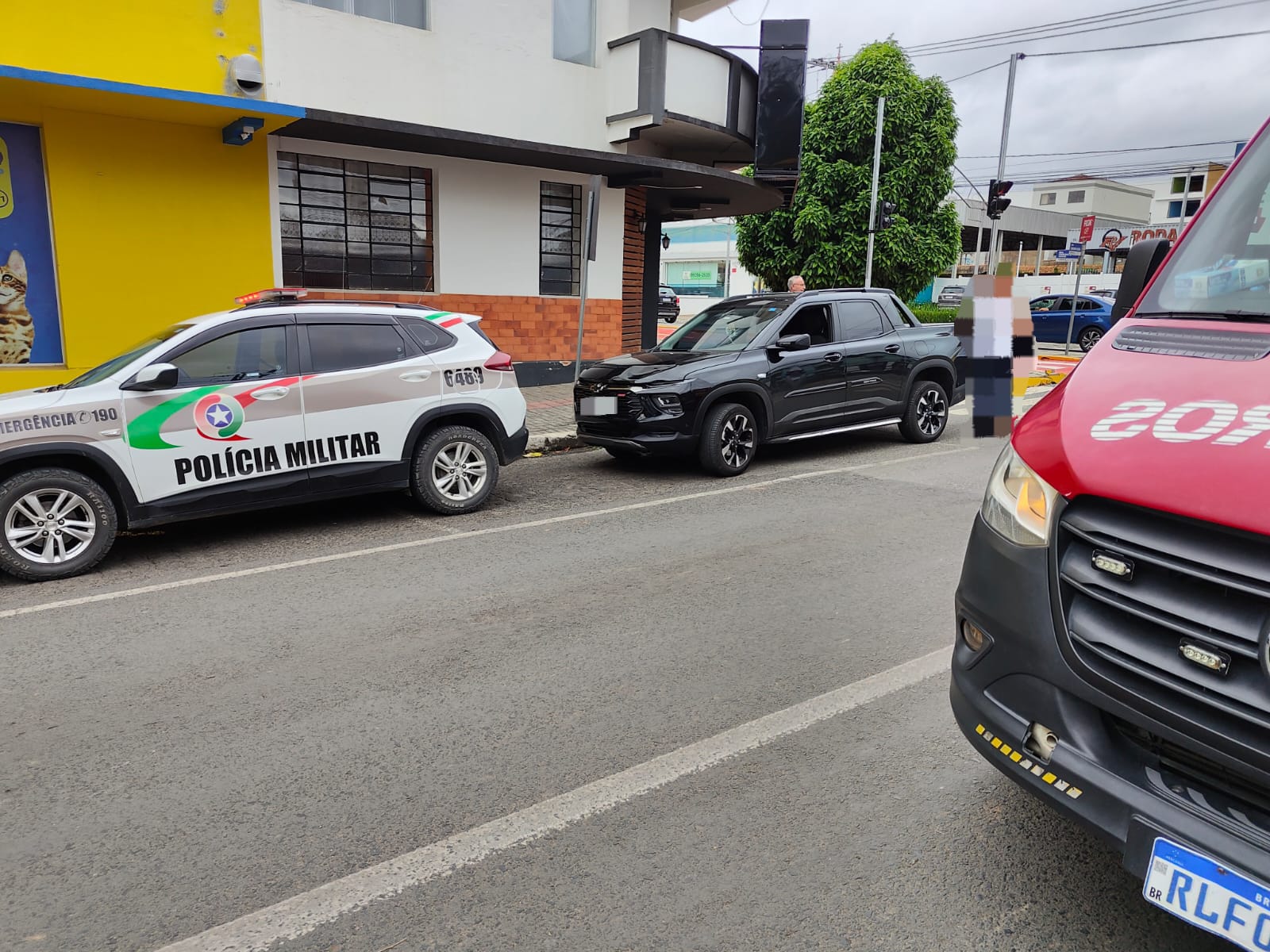 No local, os bombeiros encontraram a condutora da bicicleta elétrica, uma jovem de 18 anos, consciente e orientada, sentada próximo ao veículo envolvido, uma Chevrolet Montana preta. Ela relatava dor na região cervical, no lado direito do corpo e no quadril esquerdo, além de apresentar escoriações no cotovelo e no tornozelo do lado esquerdo. Após os primeiros atendimentos, a vítima foi imobilizada e encaminhada à UPA de Canoinhas para avaliação médica. O motorista do carro, um homem de 66 anos, não se feriu.